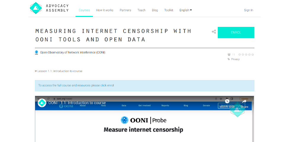 To support OONI community engagement efforts worldwide, we created an online OONI training course which was launched on Small Media’s Advocacy Assembly platform.